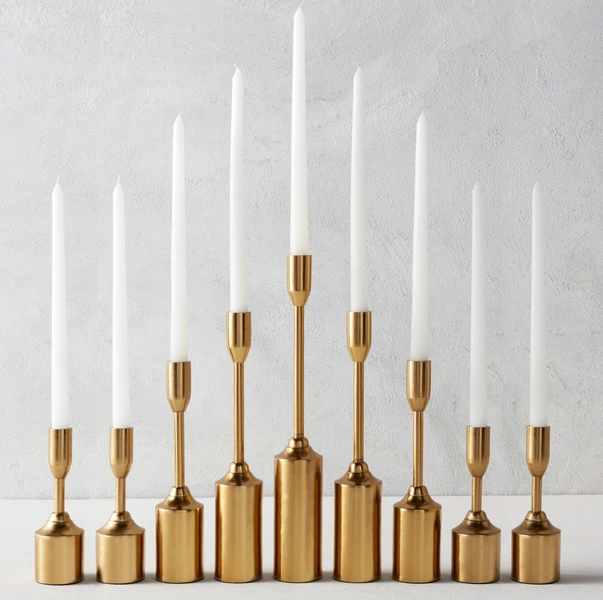 Designed with clean, simple lines and a gleaming gold finish, our Galo taper holders add modern elegance and height to any tabletop or mantel. Taper candles not included.