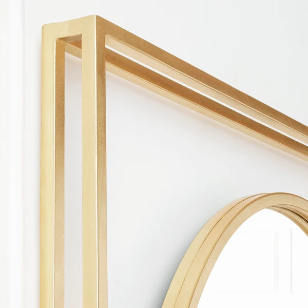 A standout addition to any space, this round mirror sits within a delicate square frame with a glam gold finish.
