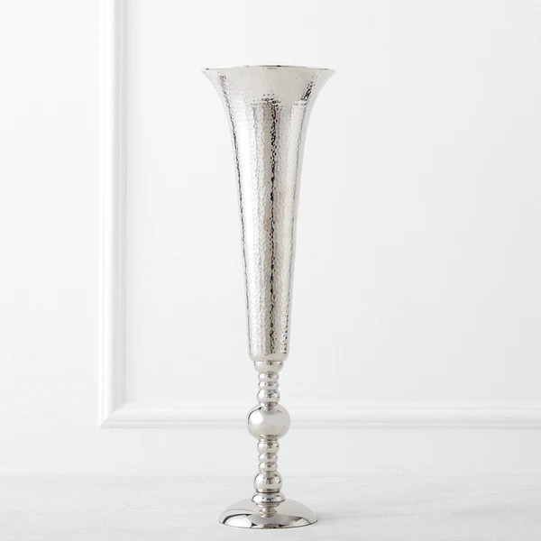 Featuring a hammered silver finish, this sculptural vase makes a stylish statement on the shelf.