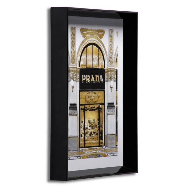 Ideal for adding a luxe note to your space, the glam storefront prints in this series are rendered in black, white, and gold and come beautifully framed.