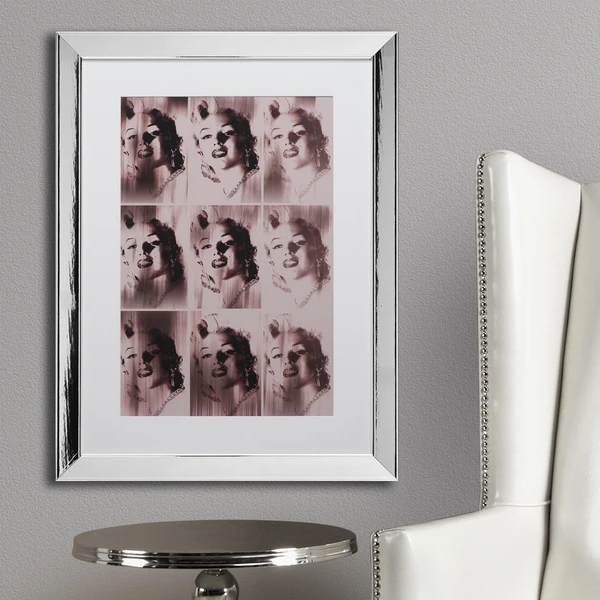 This rose-tinted pop-art work is printed on paper and beautifully set off with a chrome frame.