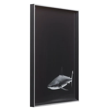This captivating shark print from photographer Irene Suchocki enlivens any wall with its dynamic composition and moody, high-contrast palette. Printed on paper, this piece is displayed under glass in a black-and-silver frame.