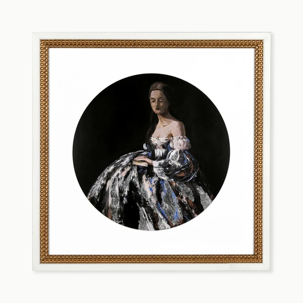 Sitting Pretty is a framed graphic under glass with a double beaded gold frame.