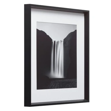 - Print set under glass with a white mat and solid wood frame with a black finish