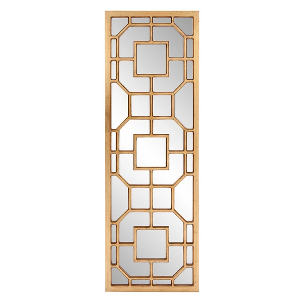Featuring an intricately detailed lattice overlay design, this wall mirror exudes classic English style. A gold finish tops off the look.