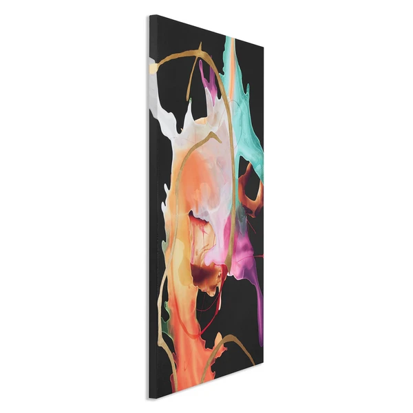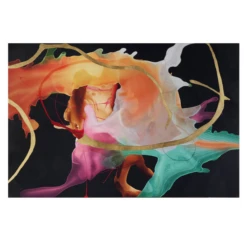 Printed on canvas with hand-applied gold embellishments, this modern abstraction enlivens any wall with its fluid brushstrokes and bold use of color. Unframed.
